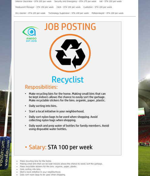Job Centre and talent hub with a range of Jobs from which ARS Members derive a weekly pay in Staters, an e-currency - Amigo